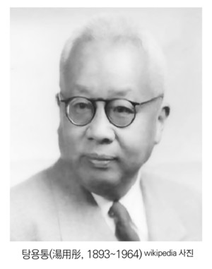 1. 탕용통(湯用彤, 1893~1964)은 1893년 간쑤성(甘肅省) 퉁웨이(通渭)에서 태어났다. 본적인 후베이성(湖北省) 황메이현(黃梅縣)은 초기 선종의 도신과 홍인이 머물던 기주(蘄州) 쌍봉산(雙峯山)에서 멀지 않은 곳이다. 《애강남부(愛江南賦)》와 같은 역사서를 애독했던 부친의 영향을 받으며 어린 시절을 보냈다. 1898년 부친 탕위산(湯雨三)은 관직을 떠나 서당을 세웠고, 탕용통은 이곳에서 공부했다. 형 탕융빈(湯用彬)이 후에 국무원 국사편찬처(國史編纂處) 처장이 된 것도 이러한 가풍의 영향이었을 것이다.1908년 베이징 공