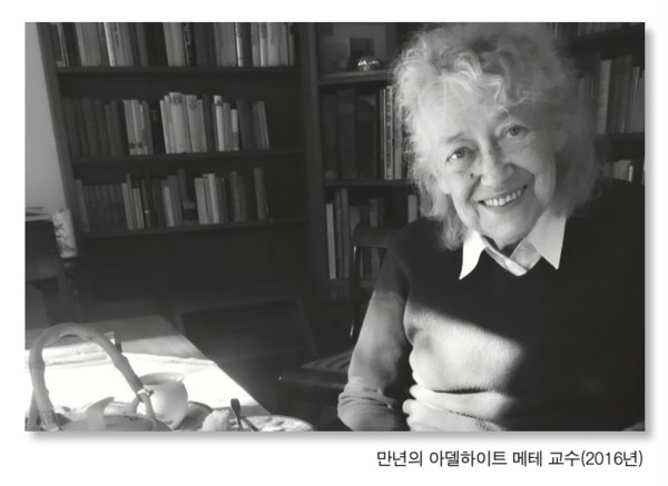 필자는 2014년 9월 루드비히-막시밀리안 뮌헨대학교(LMU)의 불교학 박사과정에 입학하였다. 독일어는 고사하고 영어도 서툴렀던 필자는 외국 생활에 적응하는 데 애를 먹고 있었다. 지도교수였던 옌스-우버 하르트만(Jens-Uwe Hartmann)은 매주 월요일 오후 ‘필사본 강독’ 세미나를 운영하였다. 그 세미나에서 교수와 선배들의 도움을 받아 가며 겨우겨우 공부해 나가고 있었다. 아델하이트 메테 교수도 그곳에서 처음 보았다. 필자의 기억이 정확하다면, 가을에 다른 곳에서 시간을 보내고 겨울부터 세미나에 참석하였다. 80세를 넘긴 백발의 명예교수가 온화한 미소를 띠며 지팡이를 짚고 천천히 세미나실로 들어오는 모습이 인상적이었다. 박사과정 학생이 발표하는 내내 그는 지적인 호기심을 잃지 않고 경청하였다.