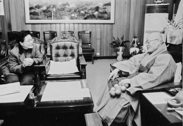 스님께서 불일암에 계실 때였다. 취재가 있어 송광사에 갔다. 큰절 대웅전 앞마당에서 일간지 기자들과 담소를 나누시던 스님은 저만큼 오고 있는 나를 향해 큰 소리로 “어이 비구니 종정 오는가.” 농담으로 반갑게 맞아 주셨다.