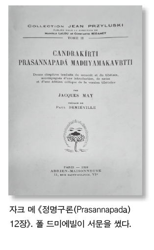 자크 메는 1971년에 스위스의 동양학 학술지 《아시아 연구》에 유식학에 대한 논문 〈불교유식철학〉을 발표하고 그의 두 번째 대작인 아리야데바의 《사백론(四百論)》, 짠드라끼르띠 《사백론석론(四百論釋論)》의 〈파상품(破常品)〉을 〈아리야데바와 짠드라끼르찌의 영구불변에 대하여〉라는 제목으로 다섯 번에 걸쳐 발표했다(1980~1984).